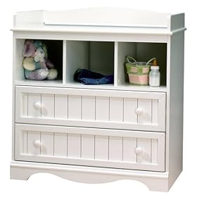 This furniture arrives unassembled. This elegant changing table features fresh clean lines, profiled edges, and lots of convenient storage space to highlight your baby's bedroom decor. Bring character to your baby's room with this unique "plank effect" changing table. 3580330 Features: Wooden knobs 2 drawers 3 open cases for convenient storage Guards on top with rounded safety shapes Space between the top and the back panel for the mattress straps Decorative kickplate Safe corners Plank effect Innovative drawer Smart Glides with lifetime warranty Child-friendly safety catches on drawer glides Manufactured from engineered-wood products 5-year warranty Assembly required Finish: Pure White Dimensions: 35"(W) x 20"(D) x 37"(H)